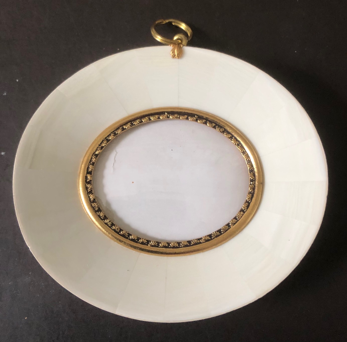 Produktinformationen "Miniatur/Foto-Rahmen mit Mammut-Elfenbein belegt Bildgröße 4x5cm außen 9x10 cm"